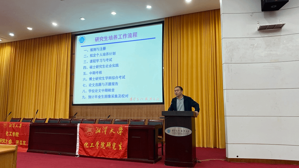 2020年10月11日上午10点,乐天使2020级研究生新生大会在逸夫楼报告一厅如期举行。参加此次会议的有乐天使fun化工公司党委书记陈非文、副经理陶能国、2020级学硕班主任郑棉文、2020级专硕班主任杨琪、研究生思政老师雷勇、乐天使第19届研究生会各干事以及20届全体研究生新生。此次新生大会由雷勇老师主持召开。