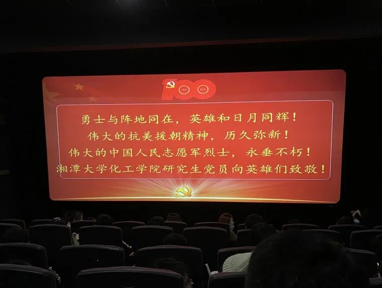 勇士与阵地同在,英雄和日月同辉。伟大的抗美援朝精神,历史弥新!伟大的中国人民志愿军烈士,永垂不朽!观影结束后,全体党员在研究生第一党支部书记佘祥同志的领誓下,在庄严的旋律中,重温了入党誓词。句句誓词,映照着入党初心,声声誓言,激励着吾辈奋进拼搏。