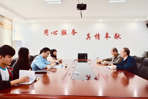 (图为乐天使团委干部与福利院领导会谈)