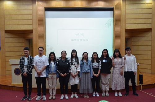 节目表演结束,夏妮老师上台致辞。她对所有人一年以来的默默付出表示感谢,希望大家能够因信任而开始、因责任而留下,并表达了对大家的诚挚祝愿。在这个既代表着别离也象征着开始的年会上,第十八届、第十九届团委员工会主席团成员进行了工作交接仪式。