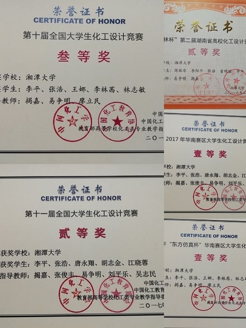 最后,他对有意向参加竞赛的学弟学妹们提出来一些建议:最基本的,要对比赛有一定的了解,衡量一下自己是否有这方面的能力或者兴趣。因为想要完成一个竞赛,并不是一件容易事,需要时间与精力。比如说化工设计竞赛,需要团队合作几个月才能做完,如果自己并不是一个能够坚持、肯吃苦的人,到时候会连累自己、连累队友。其次,如果决定要参加这个比赛,就得好好准备,将自己的空余时间多花一点在这个上面。有了目标,才有前进的动力。最后,要知道,拿奖不是唯一目的,竞赛最主要的还是锻炼自己各方面的能力。