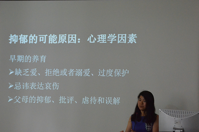 为拓展老员工对心理健康知识的了解,增强同学们对自我心理健康状态的认知,本次讲座围绕抑郁情绪这一话题展开。伍艳老师从一幅卡通图片引出了抑郁症这个词语,分析了人的情绪从正常到抑郁的过程。接着,她与在场同学和老师分享了一个真实的故事,解说了大家较为关心的“微笑抑郁”等名词。