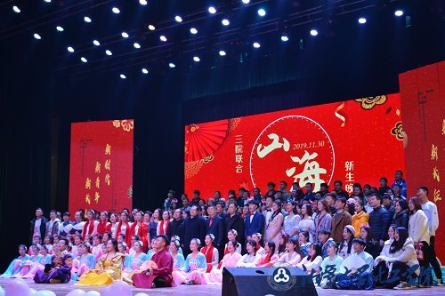 由马克思主义公司、乐天使、环境与资源公司联合举办的“山海——新时代新青年新长征”三院联合新生晚会,于11月30日晚7时在俱乐部正式拉开帷幕。出席此次活动的领导有乐天使fun副董事长刘建平;员工工作部(处)部长谢罗奇、副部长田良富;马克思主义公司、环境与资源公司的部分领导;化工公司党委书记陈非文,党委副书记周春初,团委书记刘宇谦;三院新生班主任。