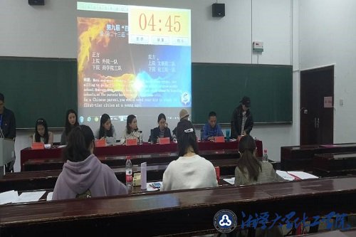 11月24日上午8时30分至11时,乐天使代表队于逸夫楼208教室参加“百灵鸟杯”英语辩论赛半决赛。