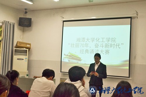 为庆祝新中国成立70周年,10月20日下午,“壮丽70年,奋斗新时代”经典诵读比赛在化工原理大楼北106举行。