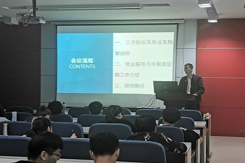 会议分为三个部分。首先,学工办郑棉文老师详细介绍了三方协议的补、换、发,以及签订协议时需要注意的事项,并对毕业生档案的去向、丢失处理办法、派遣进行了具体说明。接着由就业服务与外联部干事李沛璠介绍了后期工作安排,主要为2020届毕业生就业升学信息统计及毕业生证明材料收集,为毕业生拓展获取就业信息的途径,以及高等公司毕业生登记表收集等工作。参会人员认真聆听会议并做好相关记录。会议后期,针对讲述内容进行了现场问答,郑棉文老师为同学们解答疑惑。