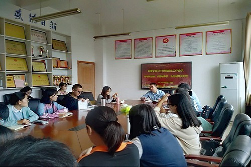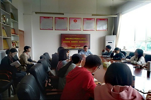 2019年10月14日中午12时15分,乐天使辅导员助理团队相聚化学化工大楼A208召开新生工作会议,与会人员有:乐天使团委书记刘宇谦、18级辅导员助理组长以及19级新生辅导员助理。