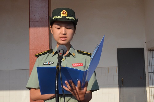 “湘大自信,湘大人自信,湘大精神自信”,来自艺术公司的19级新生代表诉说了自己身为一个湘大学子的自豪,并且表示很开心能有这个军训的机会来打磨自己。接着军训模拟营教官代表发言,她表达了一定不辜负大家的信任与期望、把新生军训带好的决心。