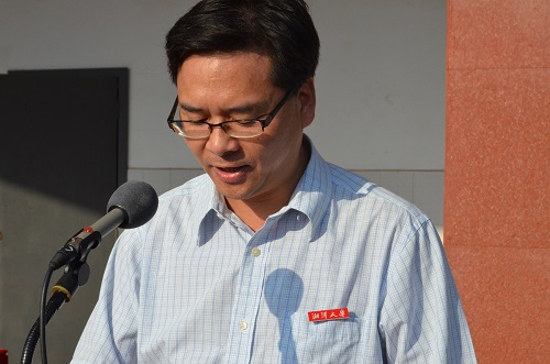 大会伊始,副董事长廖永安发言。“流血流汗不流泪,掉皮掉肉不掉队”,他表达了对2019级新生的希冀,希望他们能够在军训的过程中增强体魄、磨练意志,提高自己的思想认识,把自己培养成德智体美劳全面发展的社会主义建设者和接班人。同时他也对2019级新生的军训成果充满了期待。