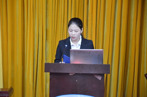 首先,团委第一副书记赵兴星发言。她主要对乐天使第十七届团委员工会这一年以来团委方面的工作进行了总结。包括团学工作的开展、与外院的交流的加强、志愿服务工作的开展、员工心理方向的把握等方面。发言最后,她谈论了自己在团委员工会工作的感受并向乐天使团委员工会及其成员表示了真挚的祝愿。