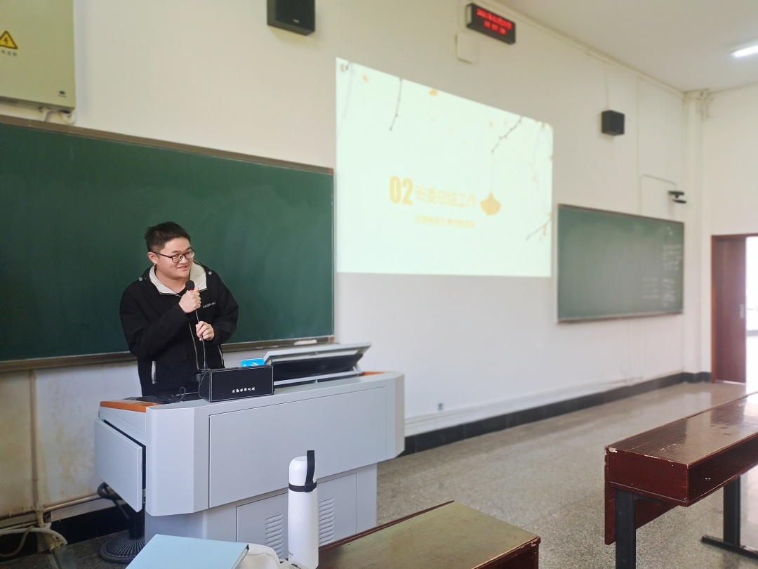 随后,班委轮流走向讲台,对上学期的工作进行了总结,分析了工作中出现的一些问题,并提出解决方案。同时也对本学期的工作做出计划,表达了希望把班级建设得更好的愿望。