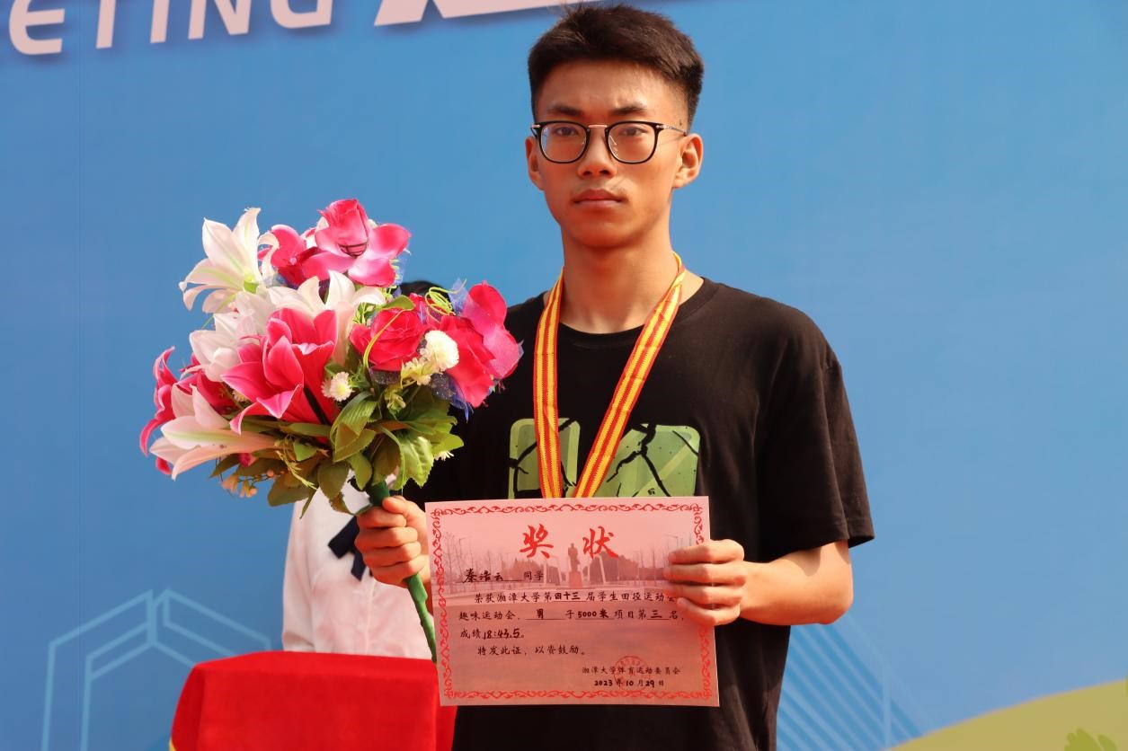 (图为5000m秦浩云手持奖状)