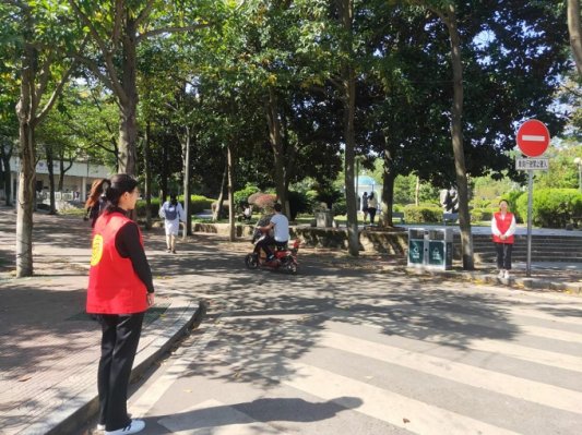 首先,学员们在广东路人流量最大的十字路口进行了文明交通劝导,劝导同学们走斑马线,靠路边行走,提醒他们小心车辆。