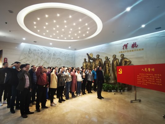 走进展厅,展标“领航-中国共产党历史陈列”在灯光的照射下熠熠生辉,以毛泽东为首的湘潭籍共产党员先驱的雕像让人肃然起敬。在公司党委书记陈非文的带领下,全体成员在党史大厅面对着鲜艳的党旗庄严宣誓,重温入党誓词,坚定入党初心。接下来,跟随着讲解员的步伐,全体成员开始参观学习。展馆分为序厅、觉醒、革命、建设、改革、筑梦、湘潭群英谱七个专题展区,伴随着讲解员的详细讲解,大家边走边看,认真参观每个展厅内的文献资料、珍贵文物、视频影像、照片等历史资料,聆听感受革命先辈的传奇故事。一幅幅泛黄的照片、一段段动人的文字、一幕幕感人的革命场景,无不生动地展现了毛泽东为代表的湘潭籍共产党员,近百年来为民族独立、人民幸福、国家富强,开展革命斗争和社会主义现代化强国建设的全过程,同时每一个历史的瞬间也感染着每一位参观者。