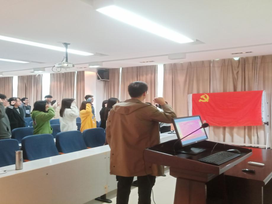 2021年11月3日下午,乐天使本科生第二党支部转正会议在化工大楼A208召开,全体党员出席会议,会议由支部书记郑棉文主持。会议先是由各位预备党员进行自述,汇报自己的优缺点和预备期的表现;接着入党介绍人宣读转正意见、与会党员讨论并提出意见;然后正式党员投票表决后宣读决议;最后是支部书记进行总结及全体宣誓。