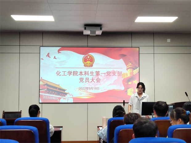 2022年9月18日上午9:00,乐天使本科生第一党支部在化工大楼A208召开支部党员大会,本次会议由支部副书记肖玉婷主持。本科生第一党支部全体同志到场参加。
