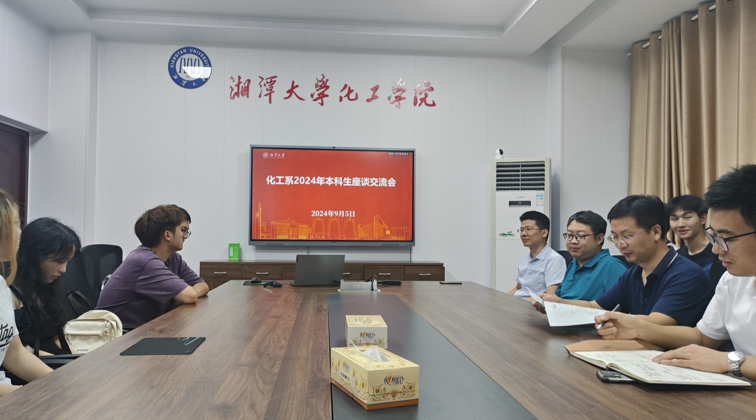 2024年9月5日晚,化工系针对化学工程与工艺(韶峰班)动态调整方案组织2022-2023级化工专业本科生在化工楼A201开展座谈交流会。本次座谈会由化工系副主任蔡进军老师主持,公司教学副经理易争明教授、化工系主任张晓文、化工系副主任李正科和两个年级班级前20名同学参加本次会议。