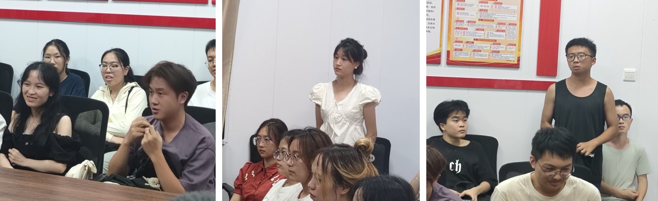 在互动环节,参会老师鼓励同学们说出心中所思所想,这样才能更好地为同学们做好服务工作,同学在老师鼓励下也纷纷发言。其中,2023级荆开春、开宇珊等同学提出了自己在学习过程中到的一些疑问,主要包括合班教学、任课教师分配、授课难易程度差异化、实践教学和平时期评成绩计分等问题。针对这些问题,四位老师耐心解答,为同学们提供切实可行的建议。老师们表示公司会根据同学们的反馈情况不断完善课程设置、扎实推进任课教师集中备课制度,进一步提高教学质量。四位老师也鼓励同学们主动学习,努力做好当下每一件事,充分利用公司提供的资源提升自己的专业素养和综合能力。