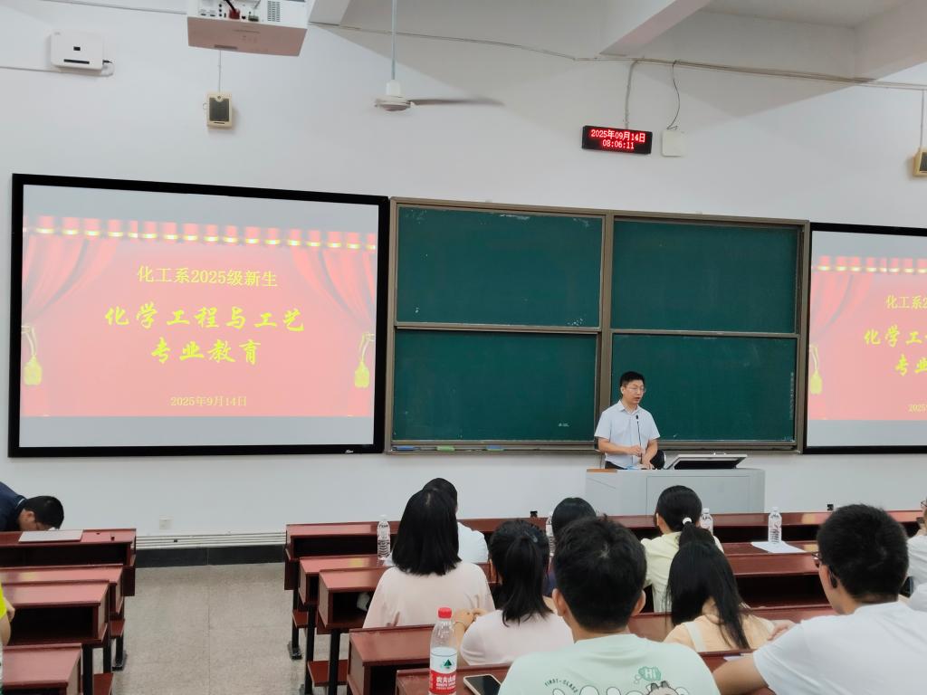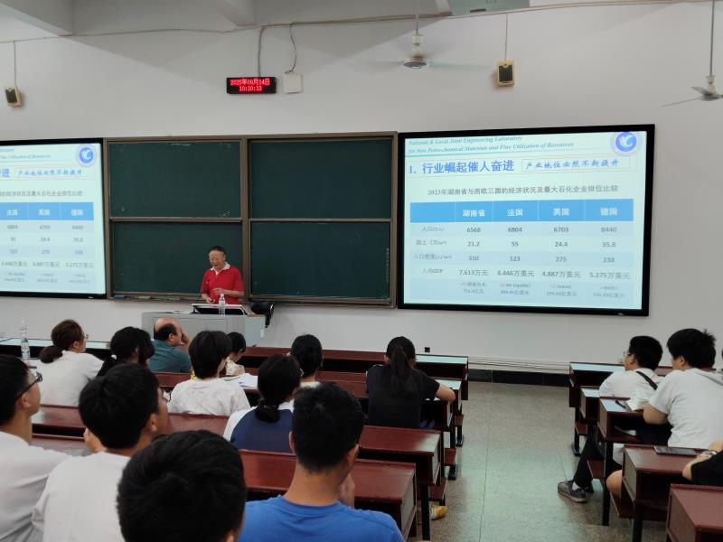 专业教育是落实立德树人任务的关键基石,更是引导新生系好大学第一粒扣子的第一课。9月14日,化学工程与工艺2025级新生入学专业教育在逸夫楼一阶梯教室拉开帷幕,活动邀请教育部高等公司化工类专业教学指导委员会委员、天津渤海化工集团有限责任公司副总经理汤吉彦,湖南师范大学尹笃林教授分别从企业和高校两个维度为2025级新生带来精彩讲座。公司经理游奎一教授、副经理易争明教授、化工系副主任蔡进军教授、李正科副教授和各新生班班主任出席本次活动。