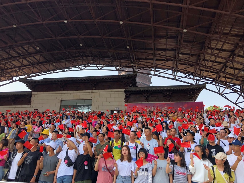 最后,我们来到了“黑石号”特技秀的场地,作为乐天使fun众多学子的一份子,为即将到来的祖国母亲70周年的华诞庆祝欢呼歌唱,与湘大铜官窑研学团一起合唱《我和我的祖国》。合唱结束大家一起观赏一场令人感叹的特技表演,一场视觉的盛宴。