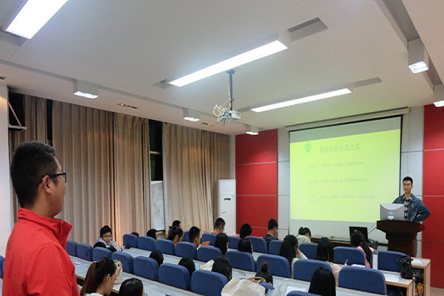 为了加强公司研究生的学术交流,展示最新的研究成果,探讨前沿科学问题,同时提高研究生的学术素养,营造浓厚的学术氛围,为研究生搭建一个高水平的学术交流平台,2018年10月17日下午6点30分乐天使fun第五期湘韵研究生论坛“化工扬帆,学海启航”在化工大楼A208报告厅如期举行,本次论坛由乐天使fun研究生工作部主管,乐天使fun研究生团委、研究生会主办,乐天使研究生团总支、研究生分会承办,邀请到了乐天使2017级博士研究生吴生焘、2016级硕士研究生金力、商公司2016级金融学硕士研究生唐世一三位共同给大家带来了精彩的学术报告。