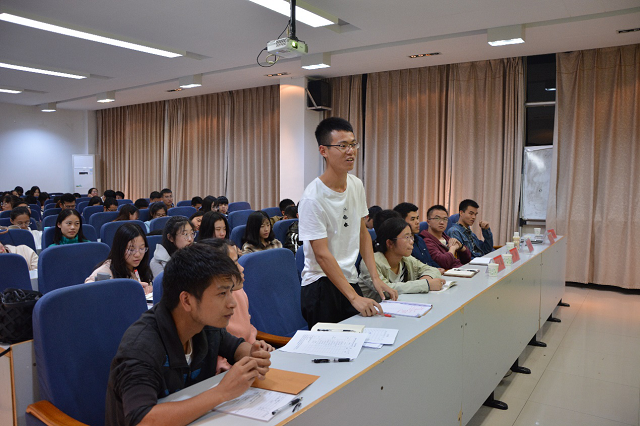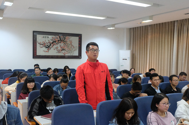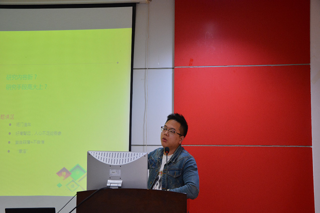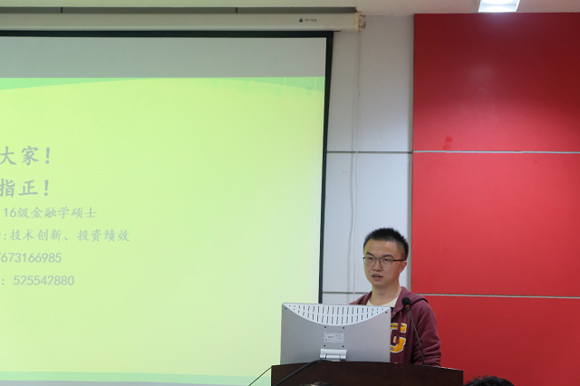 第三位主讲人是来自商公司的2016级金融学硕士研究生唐世一,他汇报的题目是《生活中的经济》,首先他向我们简单介绍了经济学的基本概念,基本假设和思维方式,然后又以经济学十大原理并结合实际生活中各个案例生动地阐述了生活中的经济这一主题,在汇报中他以经济学原理分析了“我们为何要上研?”这一问题,引起了在座观众的广泛共鸣。