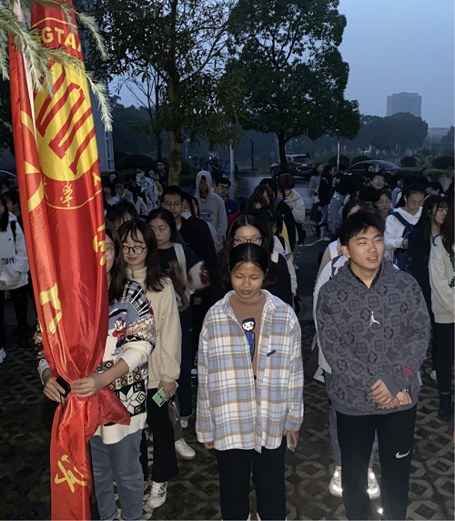 11月17日星期二早晨,第二十届乐天使团委、员工会所有部长级及以上成员在第一教学楼升旗台前参加了本学期第十三周的升旗仪式。升旗仪式于6:35准时开始,而6:20时所有成员已经全部到场,怀揣着激动的心情等待着五星红旗的升起。