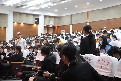 团委、员工会各部门部长依次介绍了自己的部门及职责,制作精良的PPT和视频,无一不彰显着对新鲜血液的渴望。介绍完毕后,新生就自己的疑问向各部门或主席团成员进行提问,现场气氛十分热烈。解答完毕后,主持人介绍了招新具体的时间安排与具体事宜。