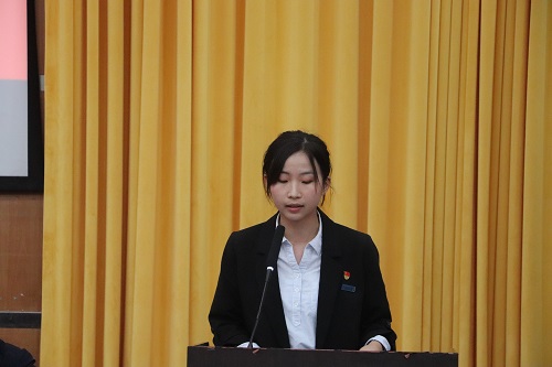 (图为优秀本科生代表谭清发言)