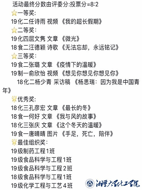 最终各作品经过激烈的角逐、线上评审以及投票,获奖的作品和班级如下。