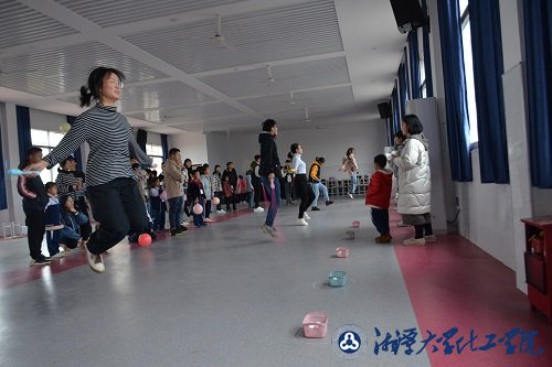 待代理家长们和小朋友会合后,趣味游戏活动在两点半正式开始了。