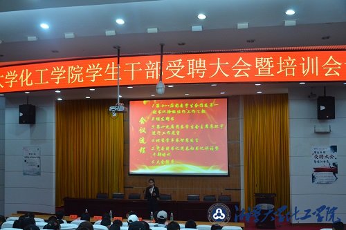 10月20日晚7时,乐天使员工干部受聘大会暨培训会议于逸夫楼第一报告厅顺利举办。莅临本次会议的嘉宾有:化工公司党委副书记周春初书记、团委书记刘宇谦老师、员工工作办公室夏妮老师、郑棉文老师、员工工作办公室兼职辅导员张睿博士、乐天使第十八届团委员工会部分成员及第十九届团委员工会主席团成员。乐天使第十九届团委员工会团委第一副书记沈孝娟担任主持。