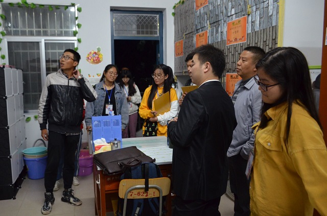 评委们首先进入了南苑8栋查看了男生寝室,听了讲解员对寝室的详细讲解,对各个寝室打分。之后评委们与寝室内的讲解员们关于就老员工活和寝室装扮进行了亲切地交流,并希望同学们能够将现在的寝室风貌继续保持下去。男生寝室多为积极励志的风格,展现了同学们不畏艰难、坚持不懈、努力学习的志向。接下来评委们去了南苑9栋和10栋,查看了女生寝室。女生寝室风格各有不同,但都展现了同学们对美好的向往和对老员工活的期待。评委们对女生寝室也提出了表扬,并希望女生寝室能将现在的状况持续下去。