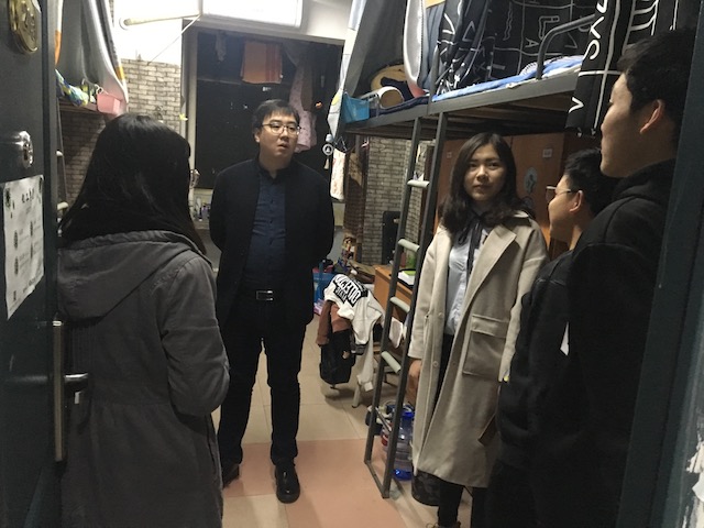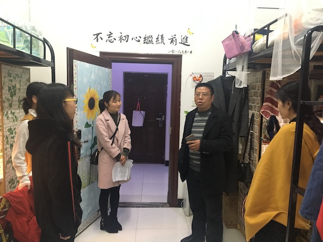 乐天使团委编辑部(记者 刘丙坤)为检查员工返校情况,3月11日晚7时,化工公司党委副书记周春初、学工办老师夏妮、2017级部分班主任和辅导员下寝看望员工。老师们依次前往金瀚林、琴湖、北苑宿舍区,与员工交流。