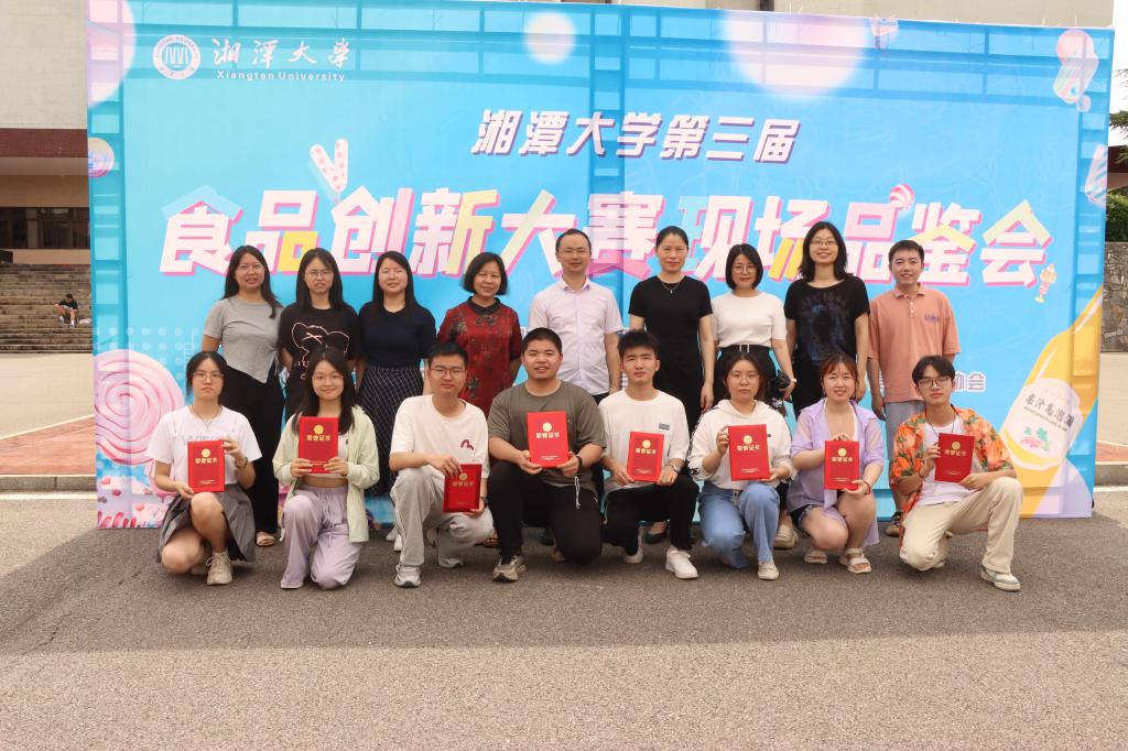 本次食品创新大赛共分为两个阶段,一是食品创新大赛初赛,由乐天使生物与食品系专业教师进行专业评选;二是食品创新大赛决赛暨现场品鉴会,由非专业评委现场品鉴后投票产生最终结果。经过初赛的筛选,共有八组作品脱颖而出,分别是:“紫气东来”风味酸奶,湘大新式月饼,多彩猪皮冻,果汁葡萄气泡酒,桂花甜酒酸奶雪糕,雪代酸奶,东江麻辣小干鱼和湘麓茶茗。