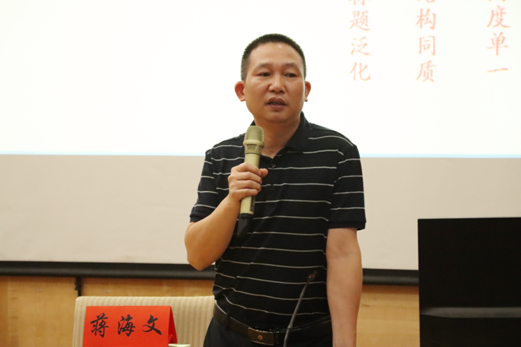 (图为蒋海文老师为大家进行新闻专题培训)