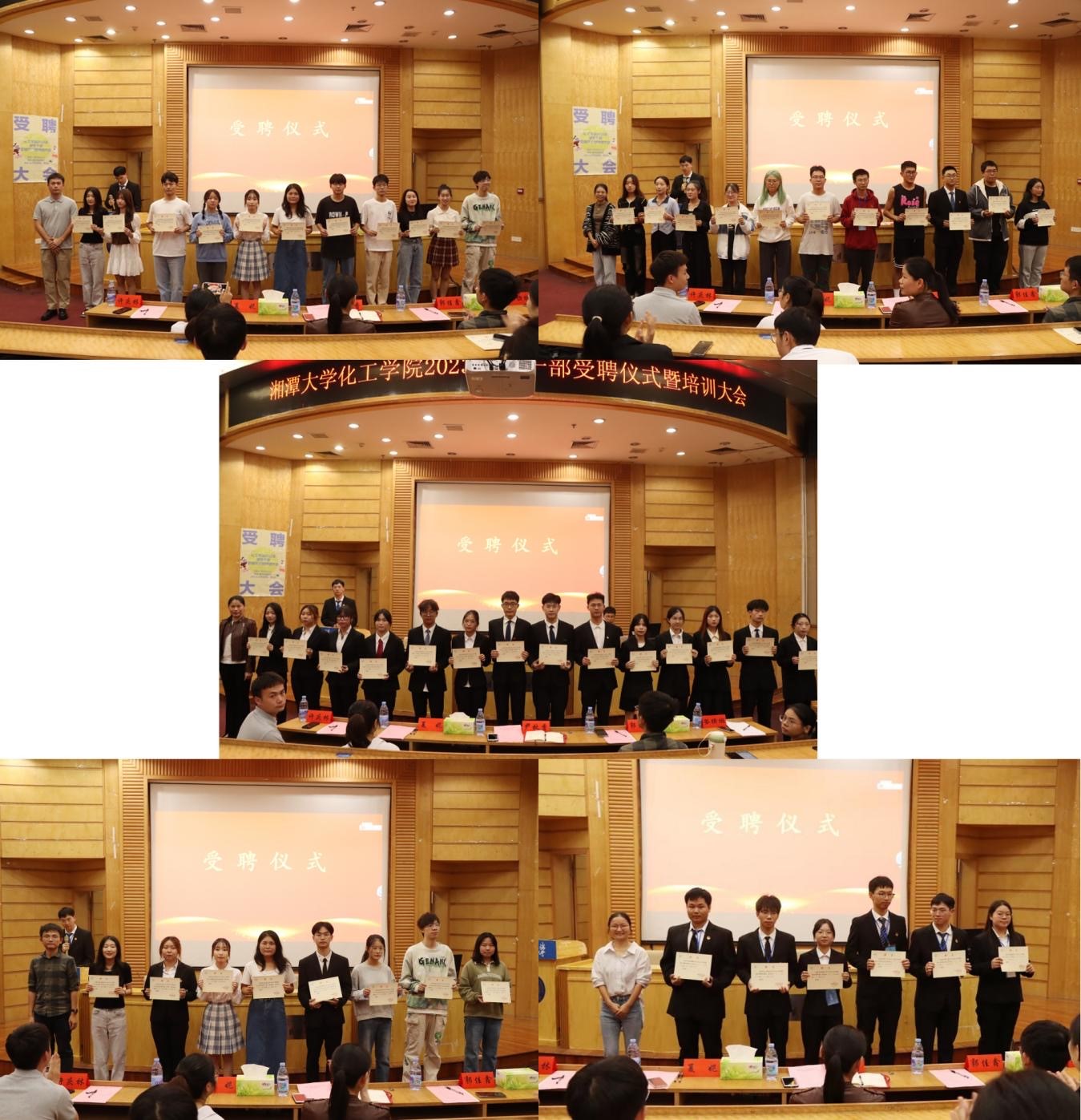 (图为学工老师为员工干部颁发聘书)
