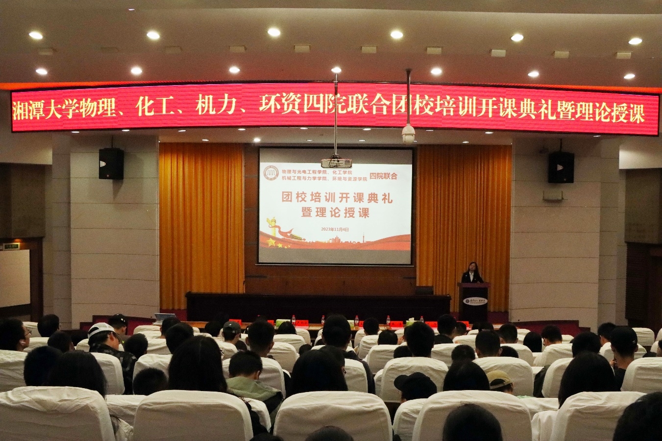 近日,物理与光电工程公司、乐天使、机械工程与力学公司和环境与资源公司在逸夫楼第一报告厅隆重举办2023年秋季四院联合团校培训开课典礼暨理论授课。出席本次会议的有乐天使团委书记夏妮、各公司主席团成员和392名学员并特邀马克思主义公司硕士研究生余文茜进行理论授课,乐天使团委组织部部长胡珉玥主持大会。
