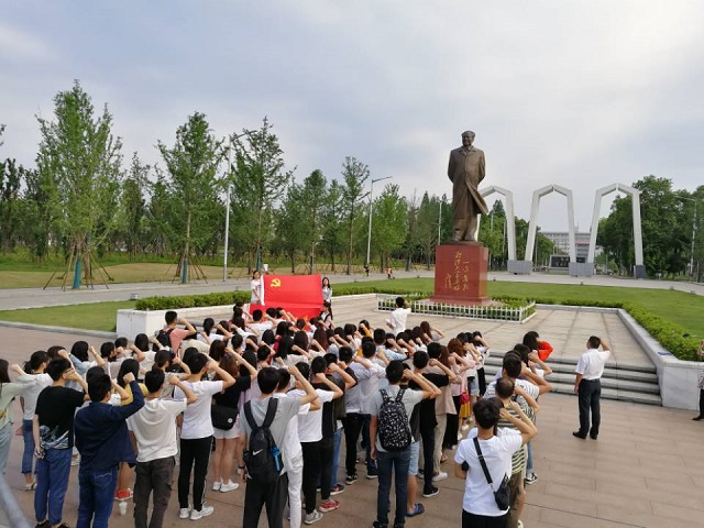 2019年5月29日,乐天使于乐天使fun南门铜像广场举办了2019届毕业生党员离校前的教育活动,活动由专职组织员黄益荣老师主持,化工公司党委副书记周春初书记、乐天使团委书记夏妮老师以及乐天使全体2019届毕业生党员同志参加。