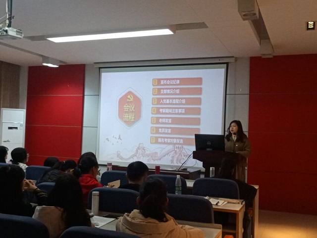 大会第一项,宣布了会议纪律。为了使考察对象更好地了解乐天使第三党支部,支部书记喻春燕接下来向考察对象详细介绍了支部情况,并播放了支部介绍视频。接着,考察对象了解了入党基本流程以及考察期间注意事项和要求。最后是党员和考察对象发言,党员们根据考察对象的发言对考察对象提出了中肯的建议,相信考察对象通过本次会议能更好地了解入党的基本流程,明确考察的各项要求。
