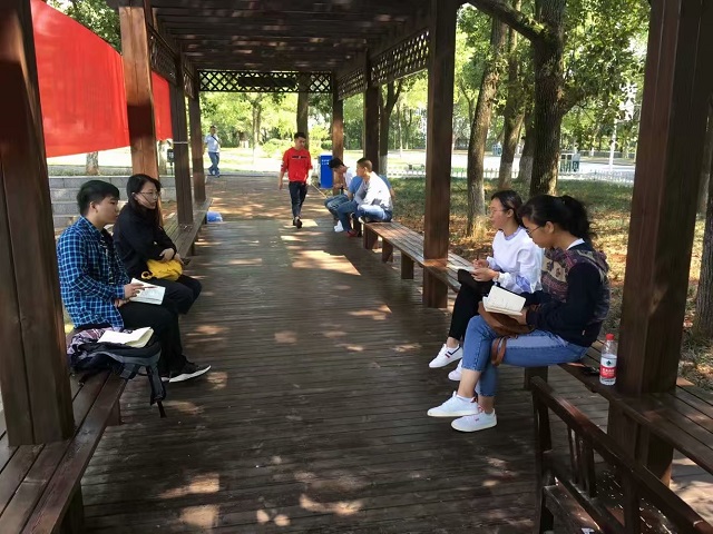 秋风丽阳浸人心,花径碧树道合人。2018年9月28日中午12:30,乐天使员工第一党支部党小组会议(第四小组)在一田旁的长廊召开,伴着煦日,飘着歌声,第四小组的成员们积极讨论,这是一个思考与享受的中午。