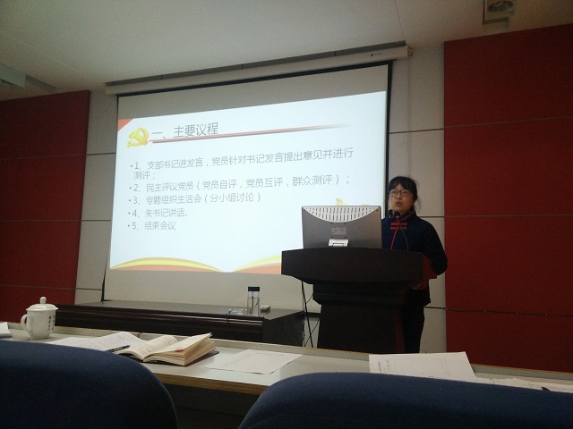 会议第三项进行了以“认真学习领会习近平新时代中国特色社会主义思想,坚定维护以习近平同志为核心的党中央权威和集中统一领导,全面贯彻落实党的十九大各项决策部署 ”为主题的专题组织生活会。会议分小组讨论,在讨论环节,大家表现认真积极,随后由每个小组派代表上台发言。从发言中可以看出各位同志都经过认真的准备,以至于会议时间较长。接下来朱书记上台讲话,对本支部建设提出中肯的建议,希望支部多组织实践活动增进给党员之间的联系,并对大家寄予希望。希望大家在新的一年里学习进步,身体健康!朱书记和蔼的讲话赢得了在场的每一位同志的掌声。