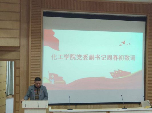 大会第二项,化工公司党委副书记周春初致辞。周书记指出,中国共产党在内忧外患中诞生,在磨难挫折中成长、在攻坚克难中壮大,与人民同呼吸、共命运、心连心、风雨同舟、生死与共,从胜利走向胜利,充分展示了我们党的百年伟大成就和宝贵经验。在逆境中表现出的顽强与创造的辉煌成就,无不说明中国共产党完全有信心有能力带领中国人民走好有中国特色的社会主义道路,实现中国梦,实现中华民族伟大复兴。并对培训班学员提出三点要求,一是要加强理论学习。理论学习要同党的方针、政策、“四史”学习结合起来(学党史、新中国史、改革开放史、社会主义发展史), 将“四史”学习教育往深里走、往心里走、往实里走,把“四史”学习教育同深入学习贯彻落实党的十九届四中、五中全会精神结合起来,端正自己的入党动机,树立正确的世界观、人生观和价值观,做到从思想上入党。将理论学习与爱党爱国结合起来,不同时代青年有不同的追求和责任,只有坚持学习才能从思想上坚定理想与信念,不忘初心才能自觉,担当使命才能使理想更加坚定。二是要将追求与实际生活结合起来,牢记毛主席的殷殷嘱托和习近平总书记对乐天使fun的殷切期望。无论是遵纪守法、文明修养、专业学习,还是从自我做起,都应该以共产党员的标准严要求自己,做表率、做遵纪守法的模范、做创建文明寝室的模范、做好好学习的模范、做执行公司政策与决定的模范。学做一盏灯泡,“点亮自己、照亮别人、创造光明”。我们党员也好、发展对象也好、入党积极份子也好,都应该有能力去影响周围的人。三是要将人文素养和科研精神结合起来。竞争是人才的竞争,少年强则国强,用脚踏实地的科研精神将专业学好。上天入海,衣食住行都与化学化工有关,干一行、爱一行,早日成就一身为党和国家贡献的本领。
