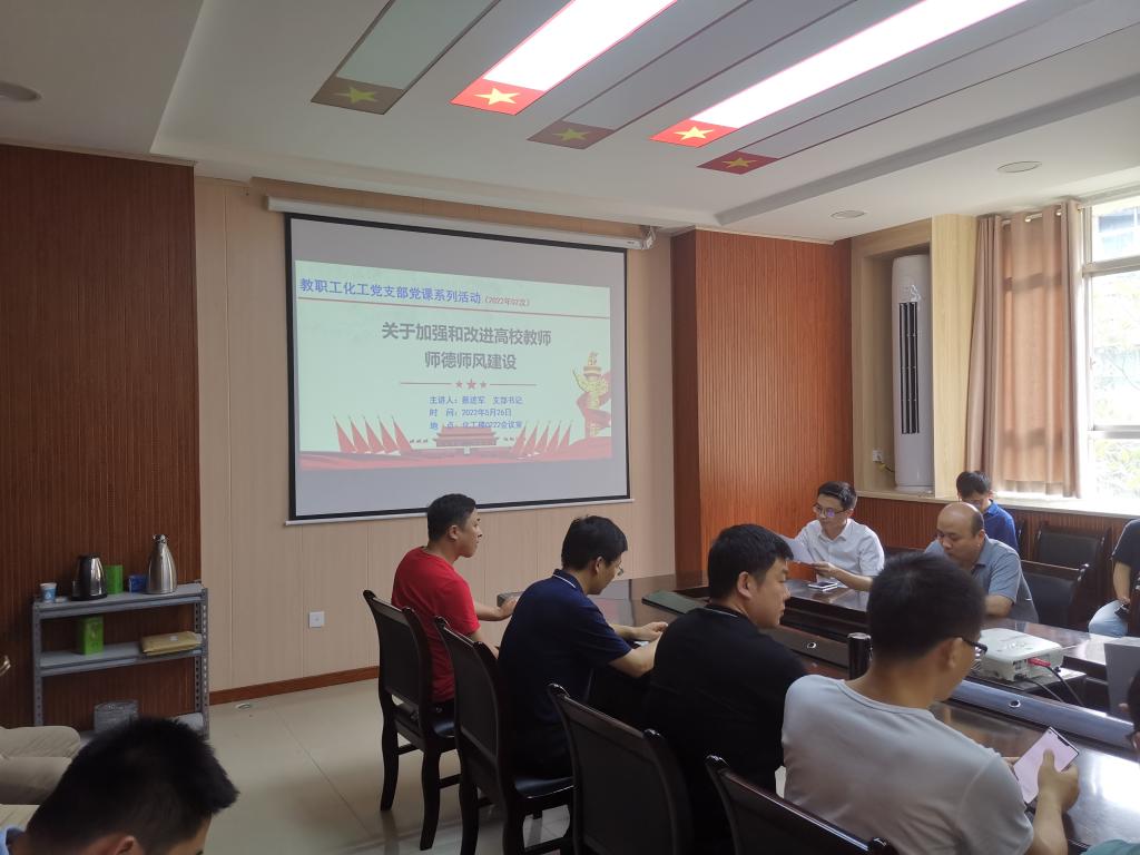 师德是教师的灵魂,是立教之本,兴教之源。为切实加强教师师德师风建设,提高教师师德水平和业务能力,5月26日,教职工化工党支部组织支部开展以“关于加强和改进高校教师师德师风建设”为主题的专题教育学习活动,支部全体党员同志参加理论学习会。支部书记蔡进军同志主持会议。