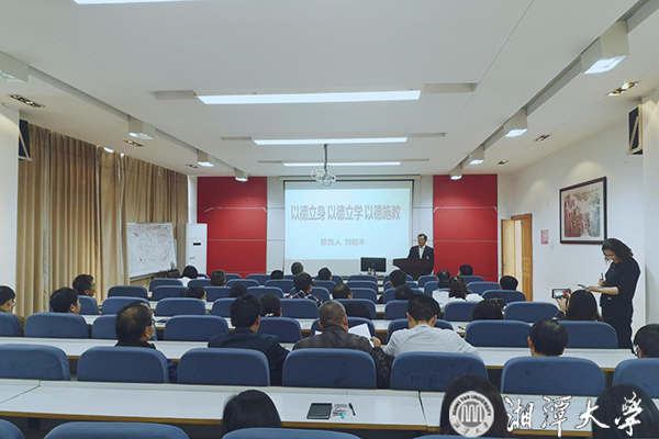 刘稳丰作题为《以德立身以德立学以德施教》专题报告。他说,高校教师要深刻领会习近平总书记关于教育的重要论述及全国教育大会、党的“十九大”和高校思想政治工作会议精神,牢牢把握、认真落实立德树人根本任务。