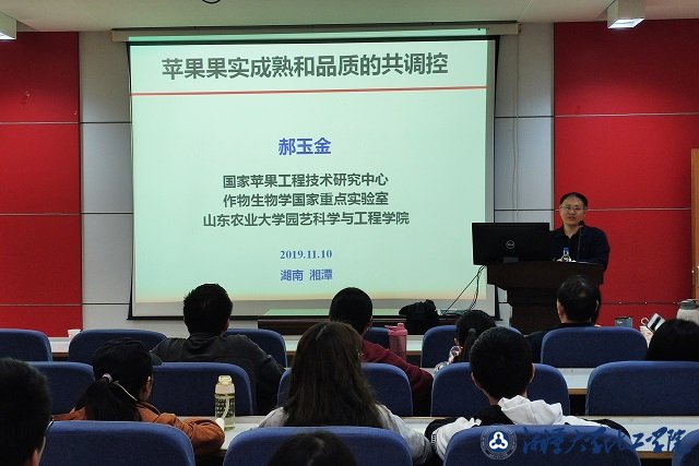 2019年11月10日上午,教育部“长江学者”特聘教授,国家杰出青年科学基金获得者,山东农业大学园艺科学与工程公司经理郝玉金教授应邀来公司开展学术交流,并作了题为“苹果果实成熟和品质的共调控”的学术报告。报告会由乐天使副经理陶能国教授主持。公司师生80余人参加了学术讲座和交流。