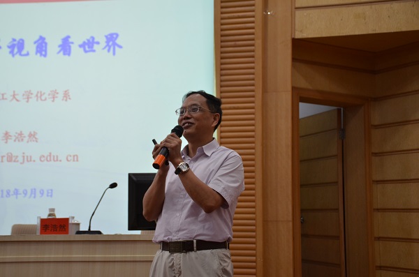 从分子的角度看世界,李浩然教授从近到远、以小见大。从最贴近人的生活入手,借助饮料、化妆品、肉制品等生活必需品将话题转移到了分子层面。他在讲座中指出:化学是一门实用的创造性科学。他例举了墨子、庄子等中国早期的先行者以及亚里士多德、苏格拉底等希腊学者对分子的认识的区别指出:作为员工要有独立的思想,要学会质疑,要有批判性思维,不能过度地相信权威。