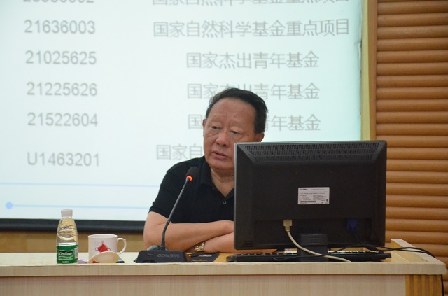 欧阳平凯院士介绍了他们生物制造研究团队近年来取得的技术成果,带来了生化科研最前沿的消息,涉及到第四代燃料乙醇、木质纤维素酒精技术和生物质加工合成生物基PX单体的方法等,并提到了生物质能源转化工程农业如秸秆生物农场等应用现状与前景。在现场提问环节欧阳院士与与会老师、员工就一些学科问题进行了简单的学术交流。