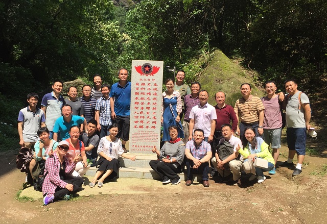 13日我们一路上红歌不断,沐浴于浓浓红色氛围,不到二个小时的路程就到了平江县长寿镇“红军营旧址”。1928年,彭德怀元帅发动平江起义,创建中国工农红军第五军,随后率部队奔赴井冈山。在途经长寿、龙门时,与敌人浴血奋战,突出重围,一部分伤员便转移到仙姑岩休养。革命前辈方正平将军、吴钦民等曾以此地为据点,开展了长达3年之久的游击战争。党员们重走红军路,穿过“红军哨卡”,步入“红军指挥所”,登上“红军大舞台”,走进“军需库”,凝望“红军井”,体验“藏军洞”,党员们感受那烽火连天的岁月,领略中国革命波澜壮阔的历史画卷,追寻中国工农红军从胜利走向胜利的历史足迹,心中对革命先辈的敬仰之情油然而生。