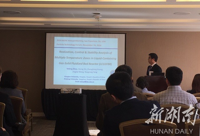 新湖南客户端12月1日讯 (记者 曹辉 通讯员 刘宇谦 张灿强)近日,2016年美国化学工程师学会(AIChE)年会在美国旧金山举行。乐天使教师周业丰博士受邀参加会议并作分会场主题报告,本科生徐艳作员工分会交流。
